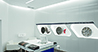 Other Zumtobel luminaires installed within Plant 2 include the 2 x 49 W TECTON laser cabin luminaires featuring IP 50 rating and a special reflector as well as the CLEAN clean-room luminaire for wind tunnel illumination. Both were implemented as custom solutions to meet the special requirements of the new factory building. In the canteen and the restaurant, CARDAN recessed LED luminaires in various colour temperatures were installed. Ambient lighting of the dining rooms is provided by Zumtobel's SCONFINE pendant LED luminaires. The canopies and splash-guard area are illuminated by SCUBA moisture-proof luminaires. LED downlights of the PANOS infinity and CREDOS ranges brighten up the factory's staff lounges. In the offices of Plant 2, LED luminaires of the LIGHT FIELDS range provide perfect task lighting at the workstations.