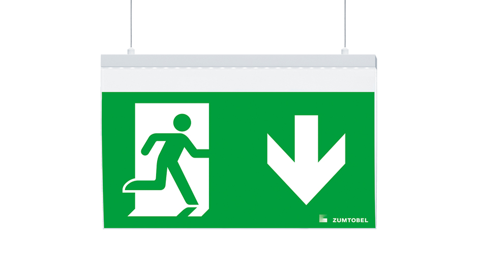 Ceiling, wall or cord suspension: The COMSIGN 150 P opens up a variety of installation options. The pendant version of the elegant escape sign luminaire seems to float in the air.