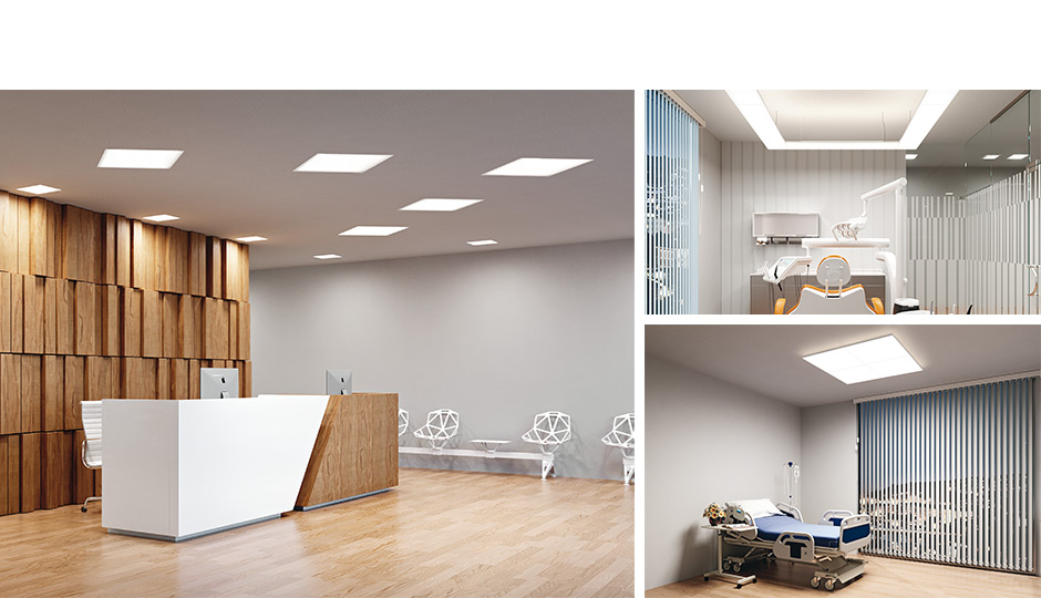 With cluster installations of our recessed luminaires, islands of light can be created in meeting zones, entrance areas and open-plan offices, flooding the rooms with light thanks to the extraordinarily high luminous efficiency and creating an ideal working environment.